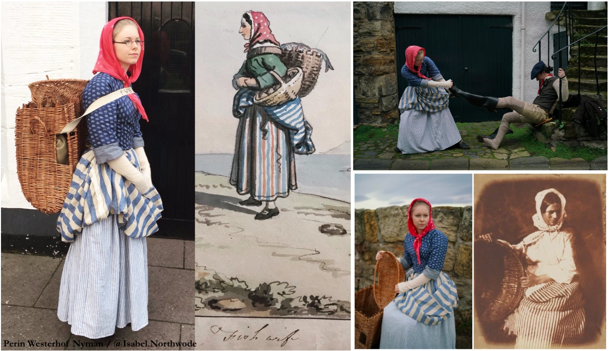 Sources are a watercolour sketch of a Fife fishwife by David Allan, c.1785 (National Gallery of Scotland, acc. no. D 404) and photos taken in St Andrews by David Octavius Hill and Robert Adamson in the 1840s (shown is Metropolitan Museum of Art, acc. no. 37.98.1.63)